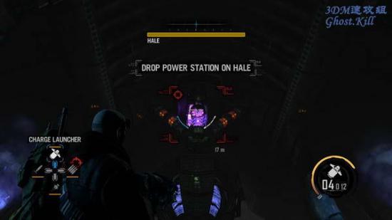 最终HALE终于追上了主角推翻了矿车,来到一个宽阔的大厅中,对方机甲严重受损了, 等他到了天花板上这个圆球的正下方后打爆圆球和天花板的接点,这样掉下来后可以砸掉机甲很多血。