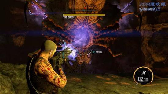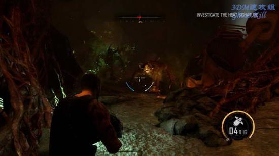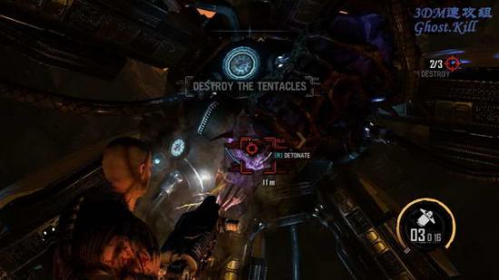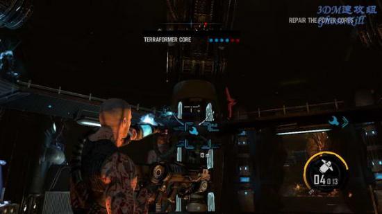 BOSS战开始后跑到房间中央的柱子后面躲着,等BOSS攻击的时候他的胸前和两侧会发紫光, 那就是弱点,用等离子炮攻击,火箭炮也可以,不过后面可能没什么时间补充子弹,建议节约。