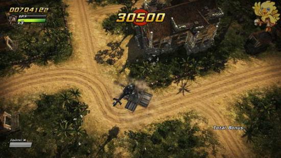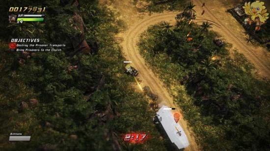 出来看见坏人破坏家园,主角出马,先打掉海面上的炸弹,然后上岸,上岸后熟悉操作, 然后跟着红色箭头指示走,一路破坏前方的敌人关卡,然后到一个教堂前,进入剧情.