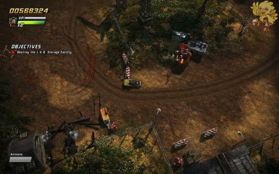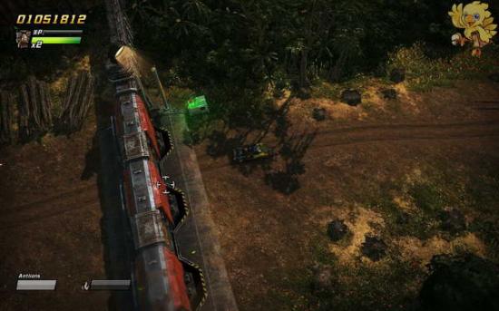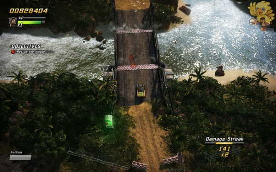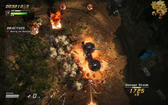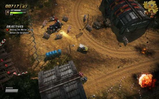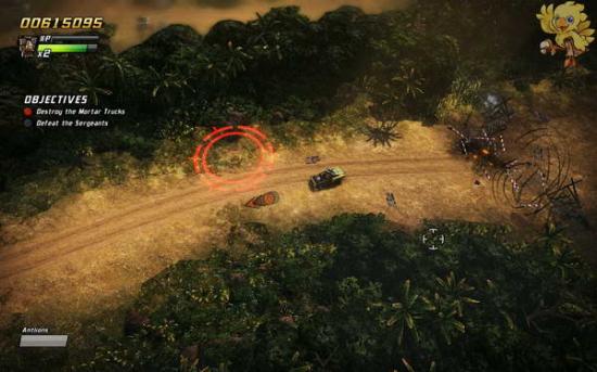 我们先去红色箭头方向,过程中躲避天空的炮弹,到点后攻击敌人的重火力车,