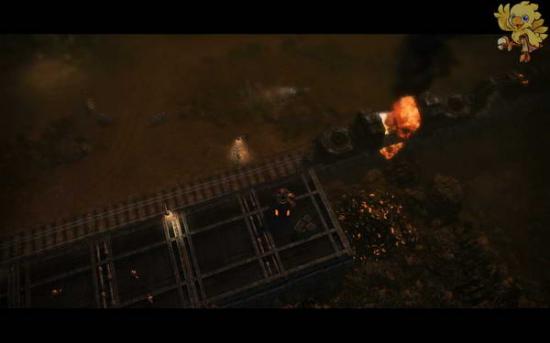 会和2辆重型坦克交火,破坏这2辆重型坦克后,看见动画切入,火车开了进来,