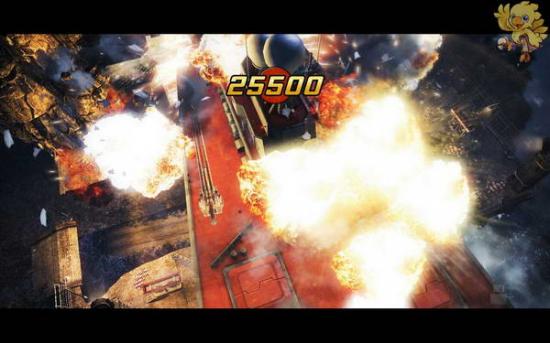 我们开到boss战车出来的地方进入斜坡,狂按空格,操作航母攻破敌人基地大门.