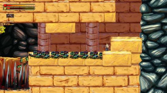 进入山洞后在中间位置最好,开始刷怪后优先攻击近程速度快的怪物,这里想要过关的重要两点就是:一躲避攻击的移动身法,二不断捡拾已死怪物掉落的治疗药品。主要讲身法,在怪物从四面八方靠近时边射击边往空间大的地区按空格跳跃,腾空的空中时持续射击,此时检查屏幕中怪物的分布,找到好的落点,之后根据怪物的多少决定是按空格跳起还是按S跳下,中途如果伤血过多就要有意识的向掉落物品地区靠近,抢拾药品不断的朝空间大的地方空格以及S,就能躲避绝大多数的攻击伤害,最后杀光怪物