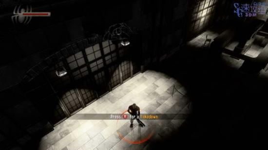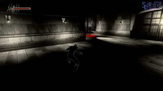 最后我们使用过去的蜘蛛侠,潜入型的。一开始按照提示按B暗“杀”第一个敌人,然后按十字键上键找到碎片位置, 然后可以自由行动了。从阴影里行动,只要背对我们的敌人就可以按B暗杀。