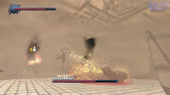 倒了楼底部后继续BOSS战,等BOSS消失的时候我们要离中间远点,BOSS会在中间落下, 向四周发射震荡波,跳着躲开。还要小心BOSS的冲撞和单方向的冲击波,它扔石块的时候比较好躲,躲开立刻按B飞踢。