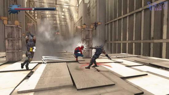 来到室外后BOSS撞倒了一栋大楼逃走了,我们跟上去,过场动画结束后要去救三个工人, 敌人适当的无视就可以,把三个工人分别送到指定点让他们操作机器。