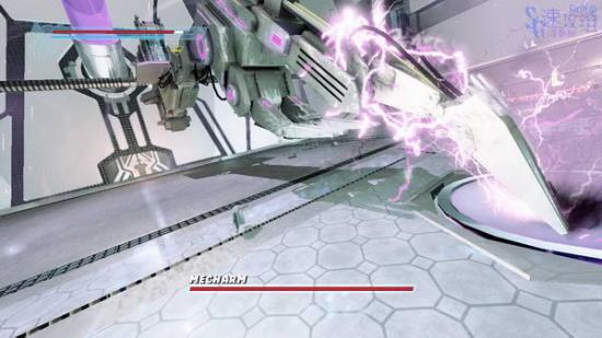 这里会有BOSS使用机械臂碍事,地上有四个口,看哪个口是打开的,过去等BOSS攻击后躲开, BOSS会触电,然后我们跳到机械臂上近身按B攻击BOSS,这样两次就能搞定。