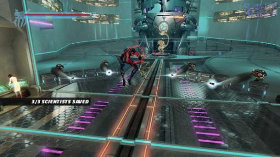 要打BOSS了,他会绕着房间射激光,跳着躲开后拉出来底座的电池,地面上黄色的板块不能碰, 三个电池都拉出来后按B飞踢把BOSS踹下来。