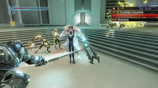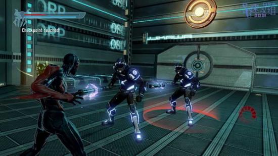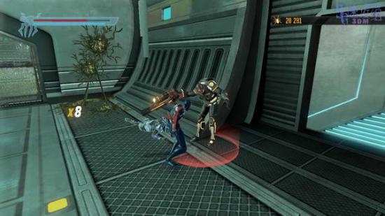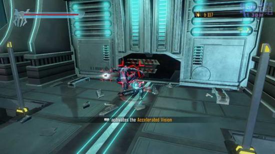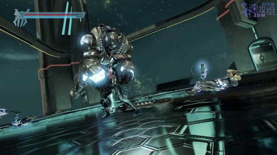 CG结束后出现新敌人,块头不小,拿着像是剑的武器,会发射跟踪导弹,不过很好打, 和一般高级兵差不多,就是会放导弹。干掉他后会来几个杂兵,都干掉之后进入建筑里。