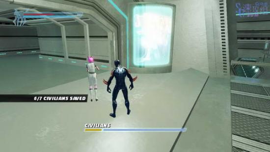 外边的小怪不用管,切换视觉模式找到需要救援的人,一共七个,如果打小怪的话就来不及来, 把他们都送到指定地点后继续追BOSS。