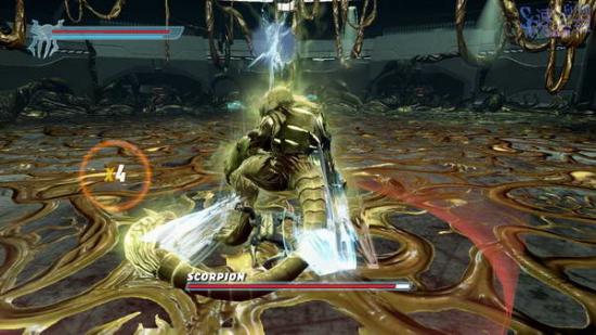 接下来打BOSS,等着他冲撞,冲过来之后滚着躲开,在他尾巴或者爪子卡到地里拔不出来的时候攻击他, 过一会他会跳到天花板上向我们射蛋,一共射三次,都躲开后把蛋扔过去把他砸下来,然后跑到他身边按B攻击, 重复几次,他没血后把我们打飞了。