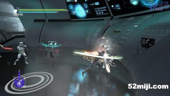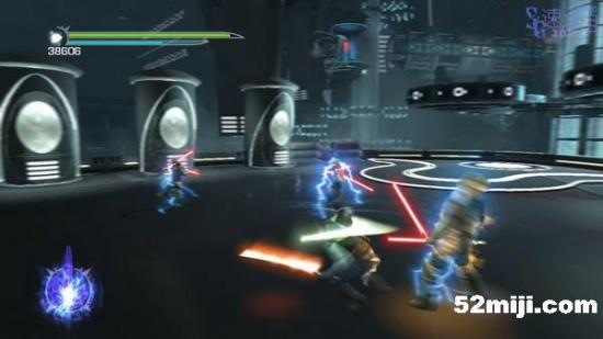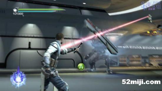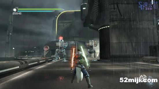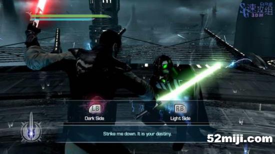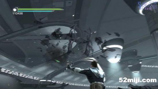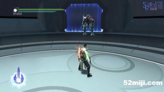 等到了圆盘上之后正式开始BOSS战,刚开始先对着他乱砍一阵,等他防守后放电攻击一下,然后立刻光剑砍,这样打下去之后过一会他会放出其他克隆人来,然后自己跑到高台上,我们杀掉其他克隆人之后对着小V站的平台按住RT在连按A打烂平台。