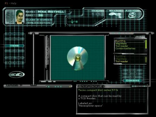 拿到枪后到2楼把柜子锁打开,得到资料。然后到大厅打掉桥上电子门的开关,左右各有一个。打掉后去右边,坐电梯下去后看到门开关有三个图形。然后回到旋转楼梯那,去楼梯后面的房间,进去后要和一个人对话,说话的顺序是:GEOMETRIC SHAPES回车,room回车,set-up回车,yes回车,yes回车,square hexagonal square回车,yes回车。回答完后他就会去开那扇有三个图形的门,再去一次那里,拿到卡片后和眼镜组合,然后去直升飞机控制塔旁边的楼梯。下去就到了四扇门。