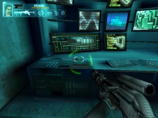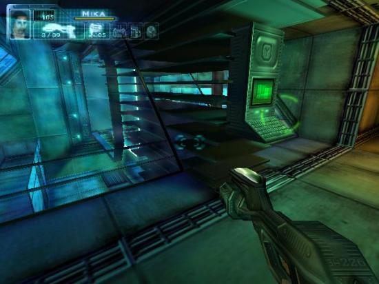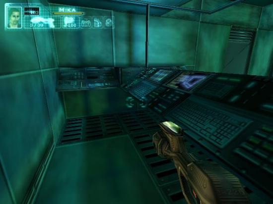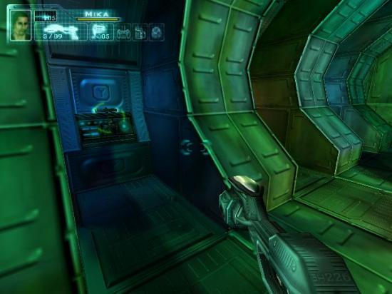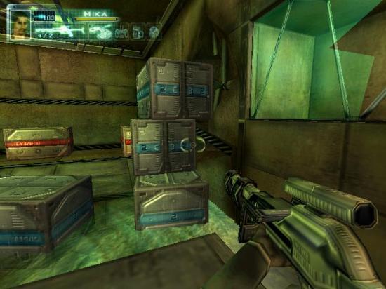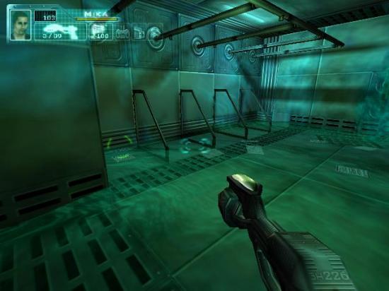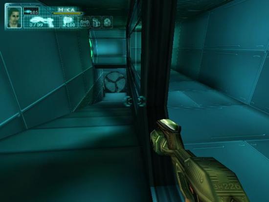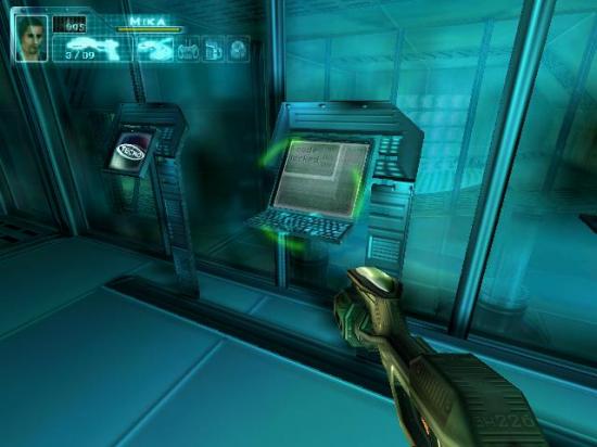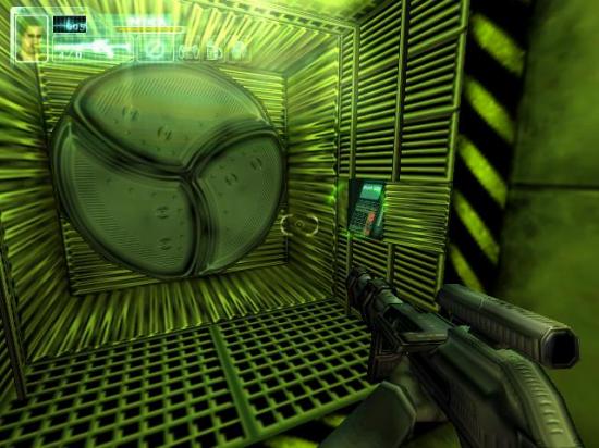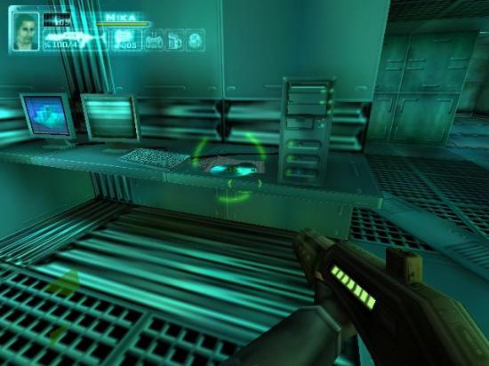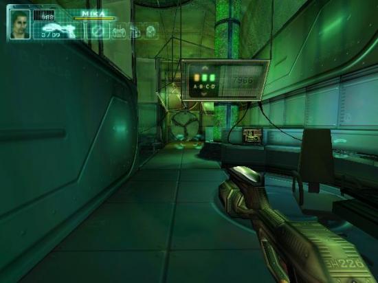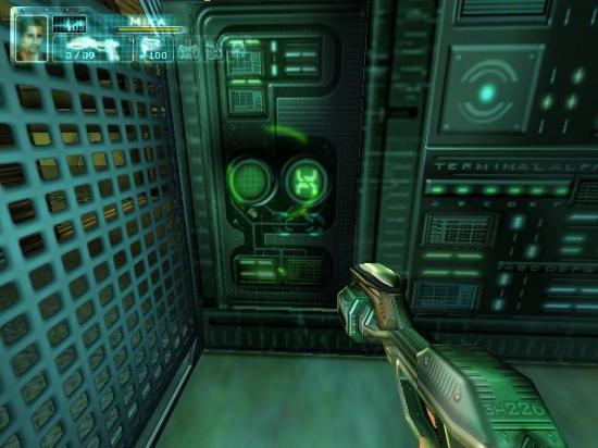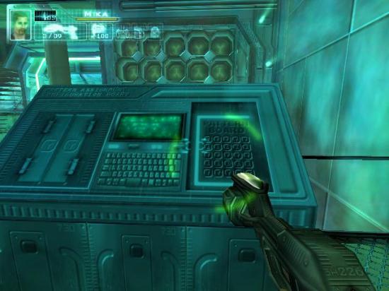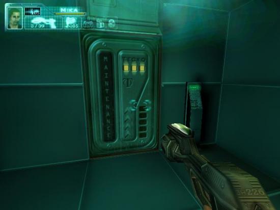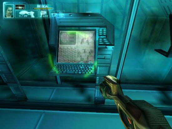 第六关,其实也就是第三关,先到这个房间打开通风管,过去就到了第一关。先在房间里拿到斧头机器人的资料,出去大厅,在上排中间的电脑输入sector-x37,得到密码100203(更新补充:困难模式下,这里的密码为:606009)然后到下排边上的电脑(就是输入15140的电脑)上输入100203.就可以打开毒气室的门,毒气室可以等下再去。(这里先收集一些装备1,吸引机器人的球,最好有四个,2,血,这个也要全拿满了。还要存个盘因为等下要打boos。)