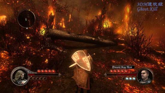 开始之后穿过一个燃烧的树林,不要靠近树木,不要踩到地上火红色的地方,都会被烧伤,还要小心随时到下来的树,还有地上的陷阱。陷阱颜色和地面反差较大,很容易能看出来。