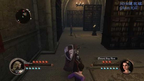 来到图书馆,这里敌人很容易可以暗杀,人很少不暗杀也不所谓。杀光之后在书架上拿到钥匙,然后去另一个书架,把书架打开后进入暗门。