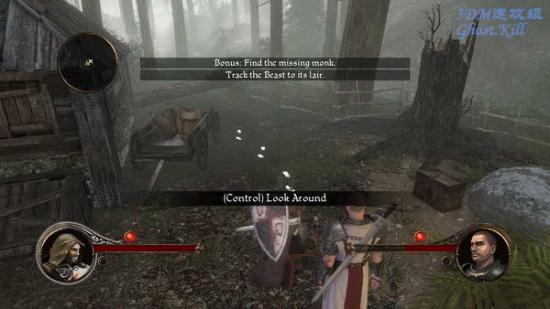 来到一个树林中,四周大雾,在小路上前进,到前方的断桥处查看一下,然后沿着悬崖走,远处是不是的会有弓箭飞过来,听见声音的时候按住空格防守。