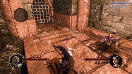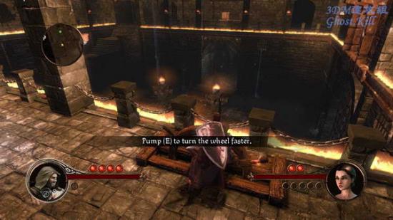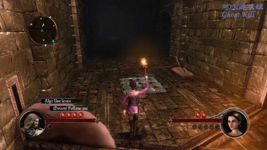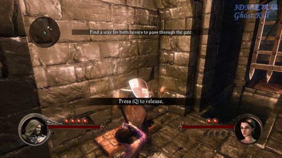 来到一个地下通道中,这一关感觉很像波斯王子。拿上一支火把在火盆里点燃,然后按tab切换角色,两个人都拿上火把后继续前进,路上还是遇到推杆就要拉。