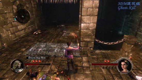 来到一个能下楼的大厅,先到这里点燃火盆,整个房间亮了起来。