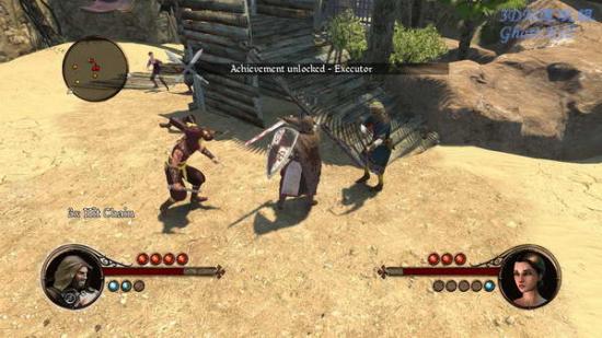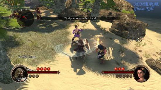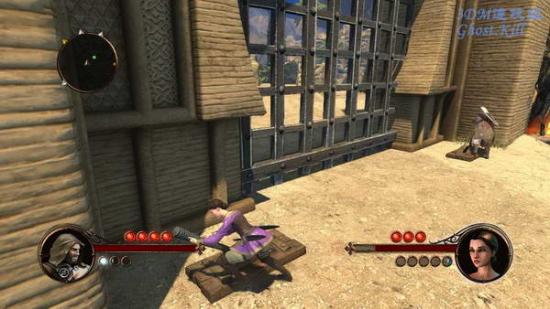 关卡开始在一个岸边,这里看上去是个沙漠的国家,敌人很灵敏,经常空翻躲避攻击,看到敌人头上有盾牌标记的时候不要用蓄力攻击之类的,会被躲开。