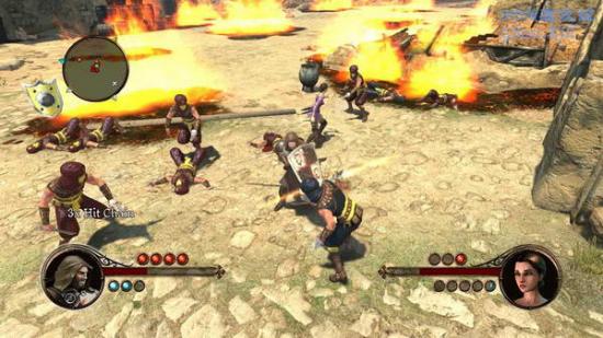 继续前进后看到一个老头正在被围攻,过去把敌人都干掉之后跟着老头走,一路上不断有敌人出来碍事,等老头把主角带到着火的建筑,到建筑门口把门踹开,救出里面的人。