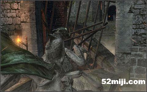 动画,Vesemir维塞米尔会让你去打开最高处的大门(图1.5)。沿途有几个不开眼的小喽啰挡路,杀!第一个一看到你就冲上来攻击(图1.3)。继续往前,再杀掉两个(图1.4)