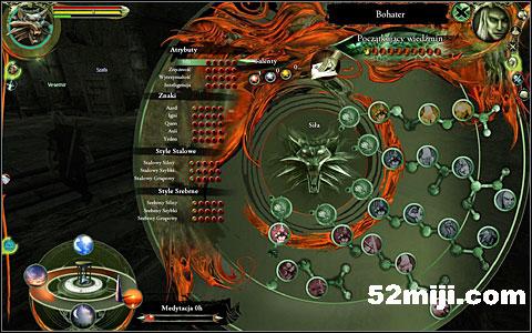 冥想的时候,可以进行人物升级技能点数分配或药剂的配置。本攻略后面还会写到这些。选择你要升级的技能,点击左下角图像中间的沙漏确认。