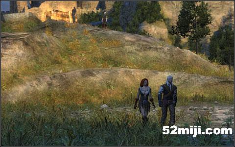 灭了所有的强盗后,耐下性子听对话,跟着其他的狩魔猎人往上跑。你不跟着,他们会在前方等你的(真是好战友啊)。