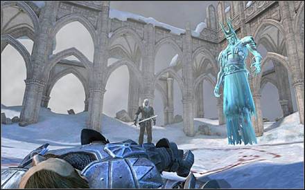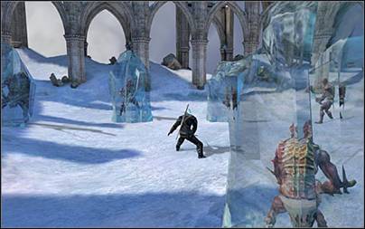 杀掉怪物,往前走,遇到特莉丝或夏妮(图42.3),她会给你解释现状并帮助你(特莉丝协助你战斗,夏妮会治疗你)。千万不要往回走——暴风雪会马上杀死你的