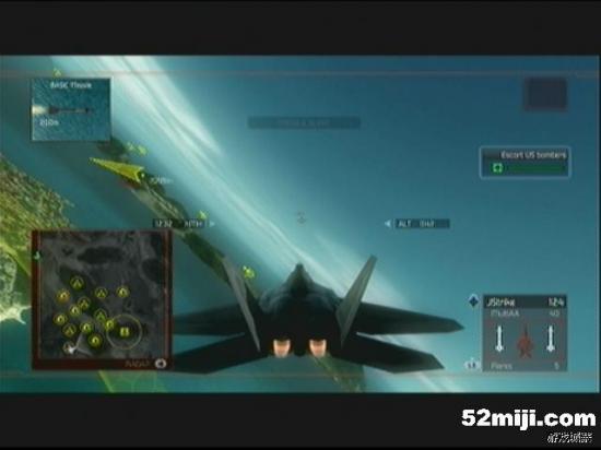 此任务无法展开战术地图,玩家只能使用显示区域较小的地图,往前飞一点后,可以看到地图有,红色区域,这些区域都不可进入,一旦误入要立马飞出来,否则会被秒杀,屏幕上出现红色信号源后,让飞机开始旋转盘旋的飞,直到红色变成绿色,说明你的方向对了,信号格树越大说明你方向越接近正确的,快要接近目标的时候,信号源会发出急促的“嘟”声,此时再按正确方向飞一段时间即可找到目标,摧毁后继续寻找下个目标,一共3个,全部摧毁后任务进入2阶段。仍然是依照信号源寻找雷达站,这次要穿过敌人的红色雷达区域,中途还有不少萨姆导弹等待着玩家,小心的绕过红色区域来到目的地后,炸毁全部7个雷达站,任务会更新成保护我军的轰炸机,同时战术地图也可以继续使用了,可以看到轰炸机的飞行路线上有不少萨姆导弹区域,同时在地图西南角还有一队Mir-2000出现,因为我方轰炸机出现在地图西北,而玩家在南边,所以可以迅速按照轰炸机的路线返回,同时摧毁轰炸机线路上的萨姆导弹(如果经验值足够,可以使用F-14的话,这里就比较轻松,可以使用外挂的制导导弹,在未接近萨姆的时候就将其毁灭,注意制导导弹发射后要让目标始终保持在瞄准圆圈内,否则导弹无法击种目标),再摧毁Mir-2000,成功保护轰炸机后,任务9结束。