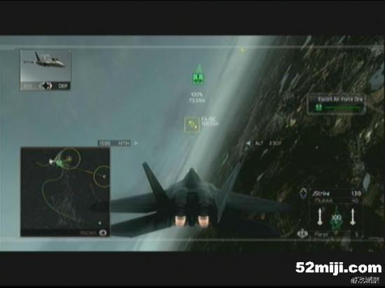 任务开始后,径直往空军一号方向飞,然后护送空军一号几分钟后,敌机F-18C会从西边出现,必须阻止敌机攻击接近空军一号,西边的敌机清理完毕后迅速北上,从从现在开始,敌人会从四面八方不断出现,机体全部是F-18C,建议玩家自机不要飞的离空军一号过远,否则难以迅速回去保护,空军一号到达后半段的时候,会出现电磁干扰现象,此时玩家锁定敌机后,敌机非常容易就会脱离锁定,所以锁定后迅速发射导弹。护送到达终点后,任务顺利完成。