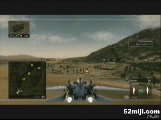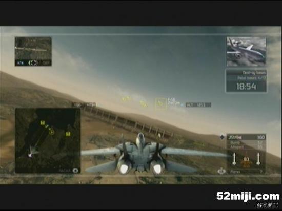 任务开始后,按照地图提示的路线飞行即可,一会儿会提示出现任务,只要按方向键‘下’切换到外挂副武器炸弹即可,前进一会后,地图上会出现敌人的仓库标志,飞过去后,用副武器炸弹的瞄准圈,尽可能多的圈进去些敌人的仓库以节省弹药,然后炸毁即可。出现新任务提示后,同理飞过去一路轰炸,之后进入20分钟倒计时,玩家要在倒计前完毕前轰炸完17个敌人地面基地,敌人会有F-5E前来支援,F-5E较前两关遇到的敌机要难对付不少,玩家需要有一定的追尾技术才行,建议优先击破F-5E后再专心轰炸基地。轰炸完毕后,任务更新,要在将军的飞机飞到目的地前摧毁其周围的护卫机,注意摧毁将军的飞机任务会失败的,摧毁后任务3完成。