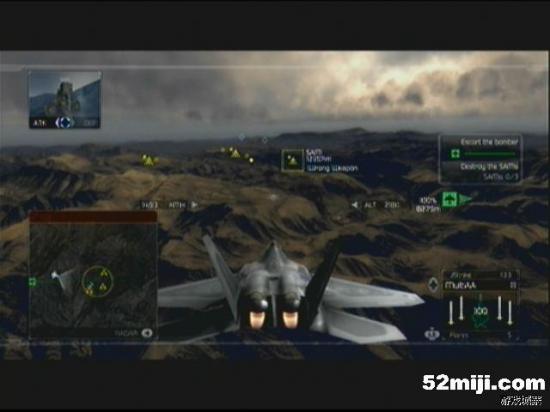 同上一任务一样,这次任务开始就要求切换副武器,切换后目标1顺利完成,之后跟随路线前进片刻后,新任务出现,在轰炸机前往目的地的同时,敌人Mig-23会以4架一组的形式出现在地图的北边和东边,在用副武器锁定多架敌人机体后予以攻击是最正常的打法,击破若干轮敌人的攻击后,任务更新,要在轰炸机到达敌人射程(,区域)之内前击破敌人的导弹塔。此处需要注意,导弹塔是藏在岩石的建筑里面,玩家必须从导弹塔的正面攻击才能将其击毁,这里玩家可以借助按X键的路径提示,即可轻松飞到导弹塔的正面。基地被轰炸后,任务4顺利完成。