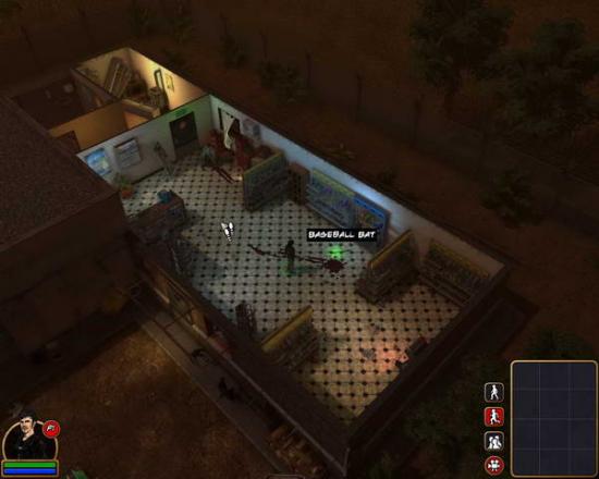 从中间的门进入后,正在吃尸体的丧尸把主角吓了一跳。捡起地上的木棍后,单击一下,武器,需要使用的时候,单击一下,让他发绿光,就能装备)。然后过去揍扁丧尸。