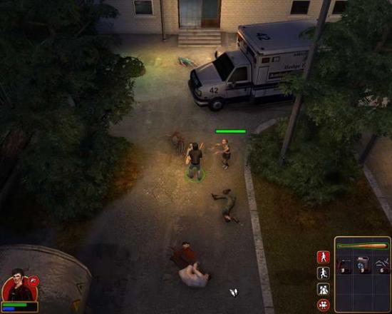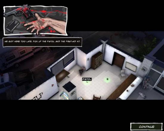 下车后往前走来到医院门口,整个医院到处都是破烂不堪的样子,显然已经受到了袭击。但是为了朋友的病情,主角果断的开们走了进去。进入后看到吧台后面有个女护士在和地上的警察“亲热”,男主角看到这么影响市容的事情,果断上去干掉了护士MM,可以在地上捡到一把手枪和一些药品,但是药品主角无法使用,必须找都会使用药品的人后才能补血。