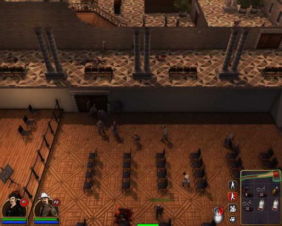 回到图书馆中后,玩家需要通过图书馆的大厅。大厅中间的吊灯可以利用一下。让警察顺着楼梯上到二层机关处等待,主角利用速度把丧尸吸引到灯下,然后让警察开启机关砸死丧尸,但是要注意,地板上圆形花纹内部的小圈才是可以被灯攻击到的范围。小心别把主角一起砸死。