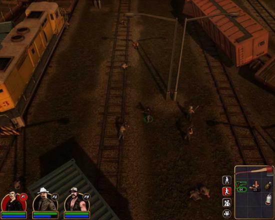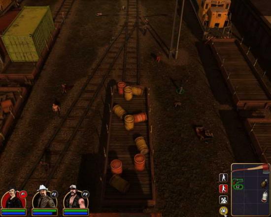 接着向左边拐弯绕过废弃的火车后向下走,来到图(01)路灯处,在这里向左边走会有一个存档点(02),但是丧尸众多,是否存档全看玩家意愿。这里可以利用路灯下方的一列满载汽油桶的火车(03)将丧尸全部炸死,不过很费事。