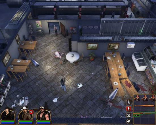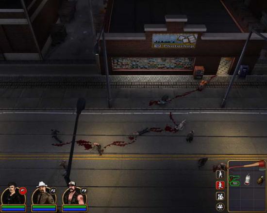 超市没什么可以拾取的,直接穿过去。在超市后门左边有存档点。门口丧尸众多,建议直接横穿马路进入对面的肉店中。肉店中有两个胖子,建议用近战武器打死大厅的胖子。然后从肉店后门出去。