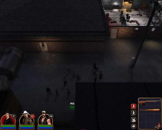 得到弹药补充后大家决定去营救工人的侄女。大家来到小镇上。初始点往左走可以拾取一些弹药。向前走进入超市后门。