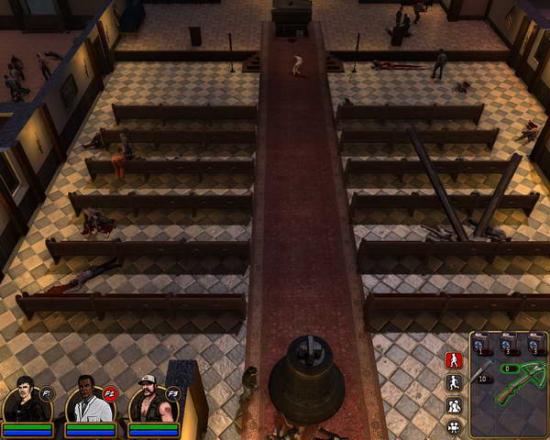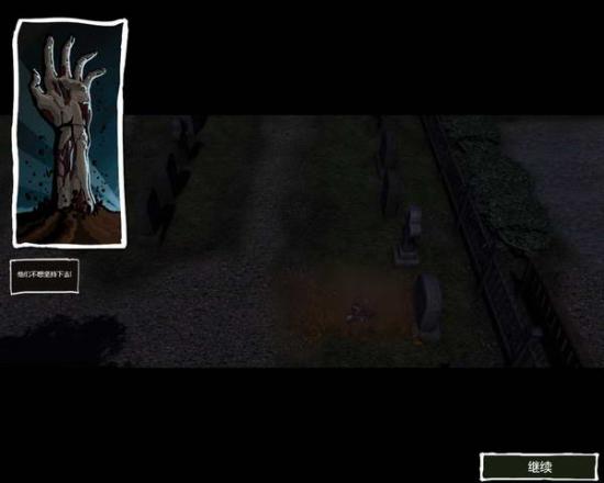 出门来到教堂的墓地。前方不远处就是存档点。这里经常会有丧尸从墓地中爬出来。向前走在一个被圈起来的小墓地中可以拾取肉搏大杀器——电锯。使用电锯及其消耗体力,但是攻击里非常高,建议给狙击手或者警察使用。一路向前走,来到尽头处可以看到另一处存档点。不过这里会有大量丧尸从墓地中爬起来。