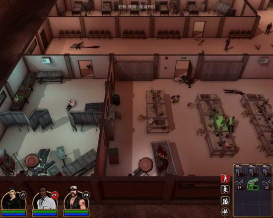 存档好穿越马路,可以看到医院的大门,注意这里有一片湖,里面会不停的丧尸,不要与之纠缠,让大家跑步前进统统进入医院后锁门。干掉医院里的丧尸后,让医生进入有显微镜的放进,站到显微镜旁边。医生分析完血液后从医院后门出去。