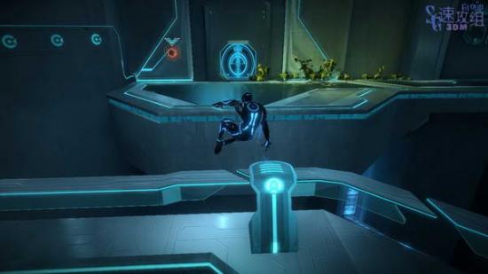 出去房间后继续跑酷,找不到路还是靠tab键,最后一个平台有三个拿盾牌的敌人,有四个补充能量的点,两边台子上的能量箱,按住shift跑上去后可以直接补满,地上小型的只能补充一部分,敌人都干掉后门打开,进去后过场动画。