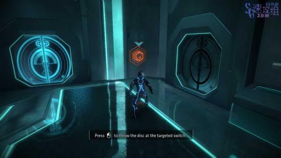 遇到图中这种橘黄色的按钮时按左键用飞盘激活它就可以。