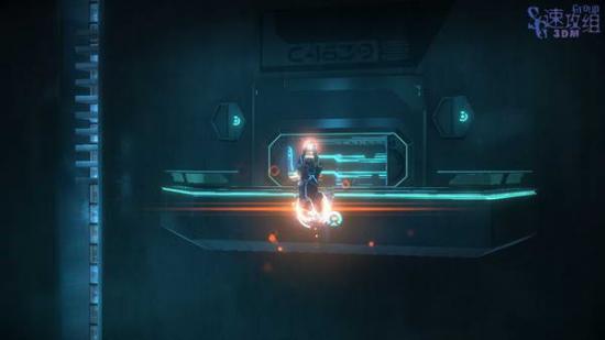 进来之后到回血的能量条那里shift爬上去,然后按空格跳到中间的平台上,在黄色发光体那里按空格,之后前面补血条的黄色物质被清除,从那里爬到爬上去后到另一个房间。