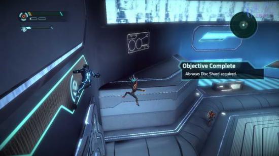 这里开始遭遇敌人,建议使用二号飞盘,直接按F群杀,敌人站的离边缘比较近,有很大几率能让他掉下去,也可以不管敌人,直接走人。