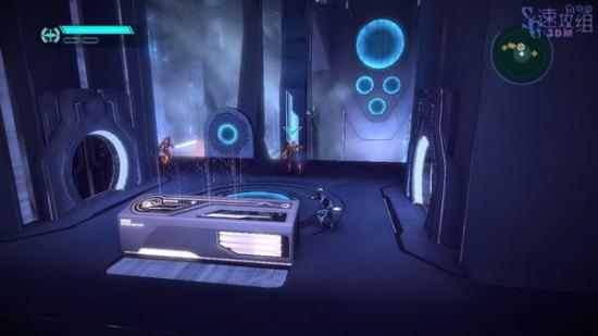 接下来这个房间和之前几个不太一样,房间里几个补血的地方被锁了,需要们过去触碰一下才能解锁,敌人一直刷,我们激活所有补血点房间门会打开,然后离开。