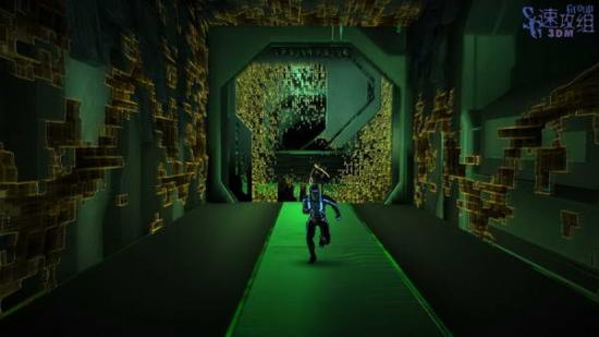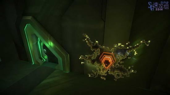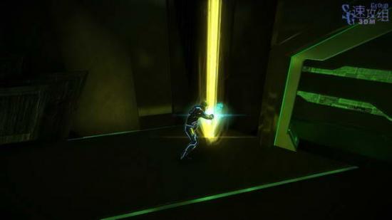 干掉敌人后跑酷来到二层,干掉所有敌人后发光体的黄色物质消失,按空格激活后大门打开。