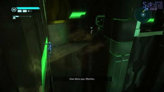 然后从右边跳到墙上,攀爬到中间的平台,上到顶部后处罚中间的发光体,然后进入过场动画。