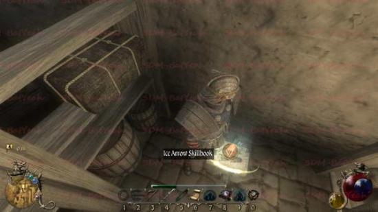 药的位置在最右边两个木架中间的宝箱里面,打开箱子取走要回去送给目标人物即可。这里可以捡到冰箭技能书。然后在去HAT城的门口同指挥官对话,得到进入HAT城的许可
