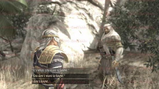 如果你没注意看对话的话,那么在下图的进入密道的口令回答选择 "YOU DON'T WANG TO KNOW即可进入密道。否则就是得和这个守卫对砍才能进去